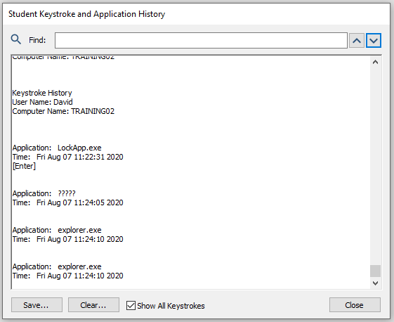- Seleccione Ver pulsaciones de teclas del estudiante e historial de aplicaciones .